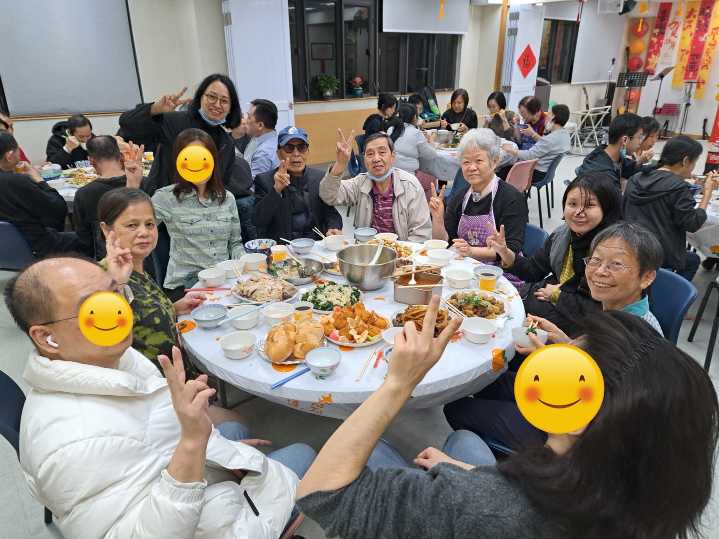 獨居的他特意請假到來,說「沒薪水也要來,我一個人,屋企沒有這樣的氣氛」,他仔細欣賞賀年的掛飾和擺設,又感受與其他鄰舍圍在一起的溫暖 ; 單親媽媽和子女起初表現拘謹,後來慢慢放鬆,一邊吃一邊分享家鄉的新年習俗,媽媽說「很久沒吃這麼豐富了,平日我們都是隨便煮食」;身體虛弱的婆婆由教會義工陪同到來,看見相識的同工和義工,她特別開心,能暫時忘卻身體的不適和獨居的孤單感。